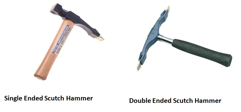 顾名思义,这些锤子用于砌石或石头,通常被称为石匠的锤子。锤头的平面用于打碎石头,而凿形的面用于去除材料表面不均匀的碎屑。
